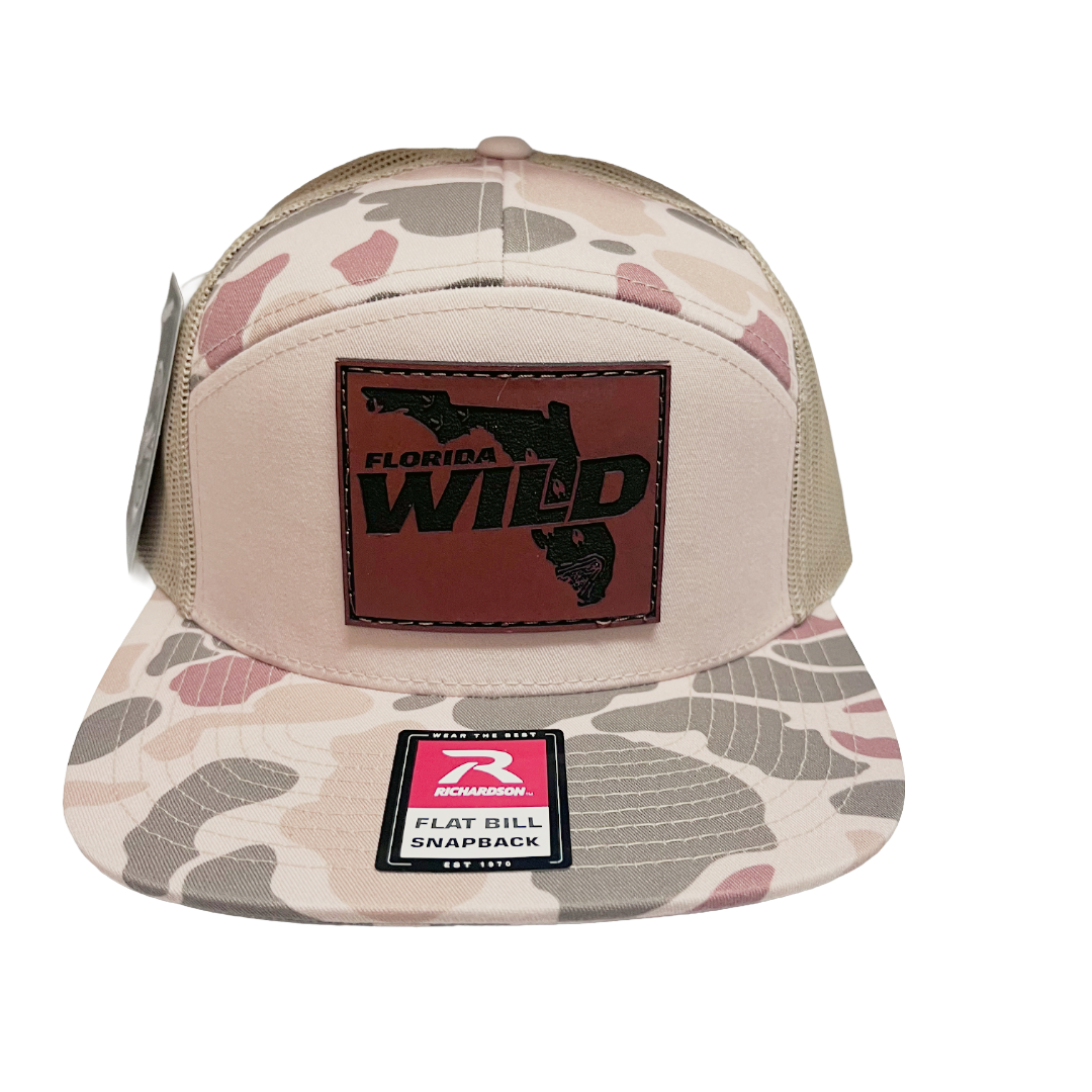 The Florida Wild Sandbar Series Hat in Coastal Camo is designed for long days on the water and hotter days on land. The neutral camo pattern keeps it clean and versatile while the genuine leather patch delivers a premium, unmistakable Florida Wild identity.